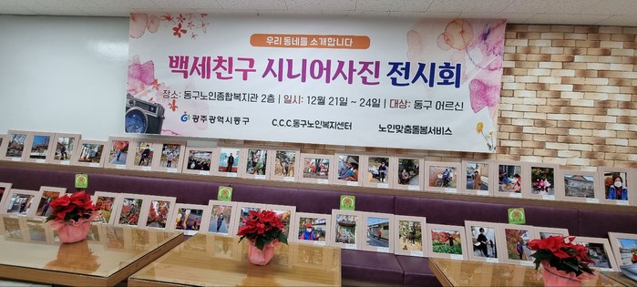 [광주=프레스뉴스] 강래성 기자= 광주 동구(청장 임택)는 동구노인종합복지관에서 ‘우리 마을 백세친구(이하 백세친구)’ 사업의 일환으로 ‘백세친구 시니어 사진전’ 작품전시회와 10편의 우수작에 대한 시상식을 개최했다고 23일 밝혔다.