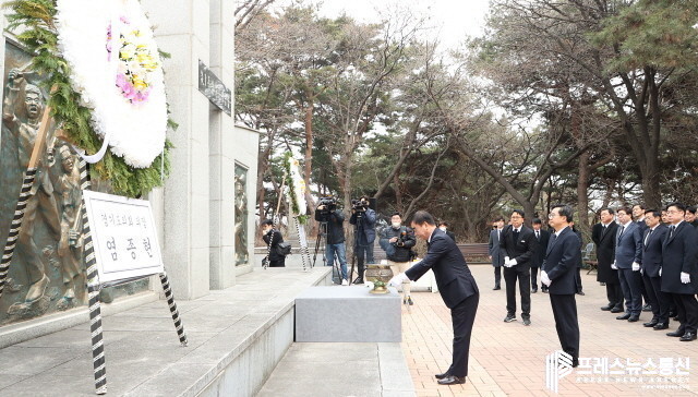 [프레스뉴스] 김대일 기자= 염종현 경기도의회 의장이 1일 3.1절 104주년을 맞아 수원시 팔달산 중턱에 위치한 3.1 독립운동기념탑에서 참배했다.