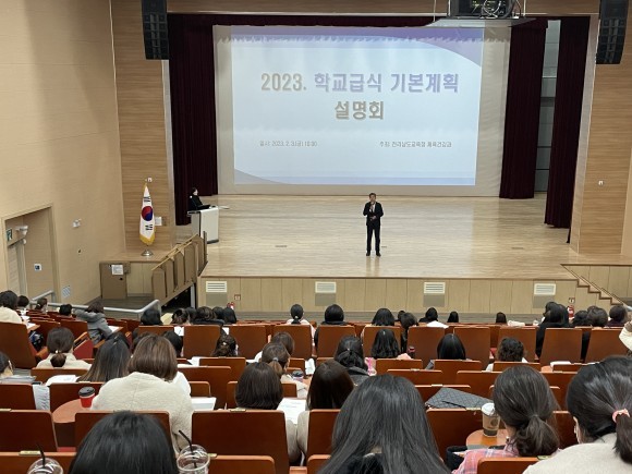 [전남=프레스뉴스] 강래성 기자= 전라남도교육청(교육감 김대중)이 2월 2일(목)과 3일(금) 이틀 동안 전남도청 김대중강당 및 순천만생태문화교육원에서 ‘2023. 학교급식 기본계획 설명회’를 개최했다.