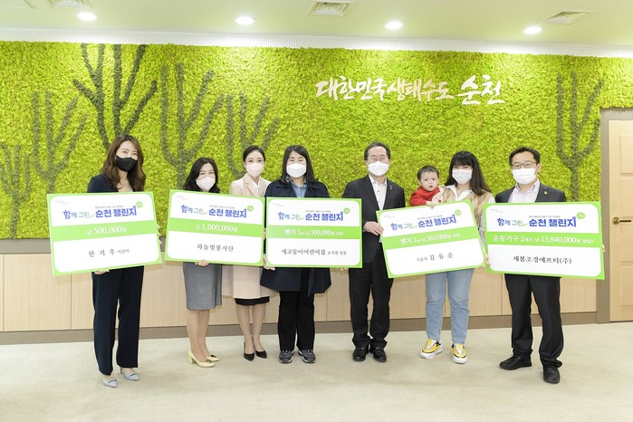 [전남=프레스뉴스] 강래성 기자= 순천시(시장 허석)는 지난 22일 자발적인 기부문화 활성화를 위해 전개 중인 ‘함께 그린(green) 순천’ 챌린지에 참여한 시민들과 첫 번째 기부금품 전달식을 가졌다.
