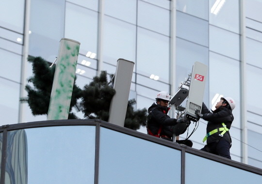 ▲서울 세종대로 인근에 위치한 기지국에서 한 통신사 관계자들이 작업을 하고 있다.(사진= 뉴스1) |