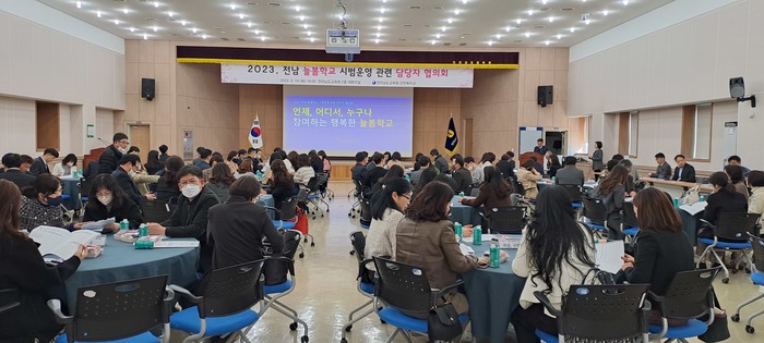 전라남도교육청은 3월 14일(화) 청사 대회의실에서 전남 늘봄학교 43개 시범운영 학교와 22개 교육지원청 간 협의회를 갖고 효과적인 늘봄학교 운영 방안을 모색했다.