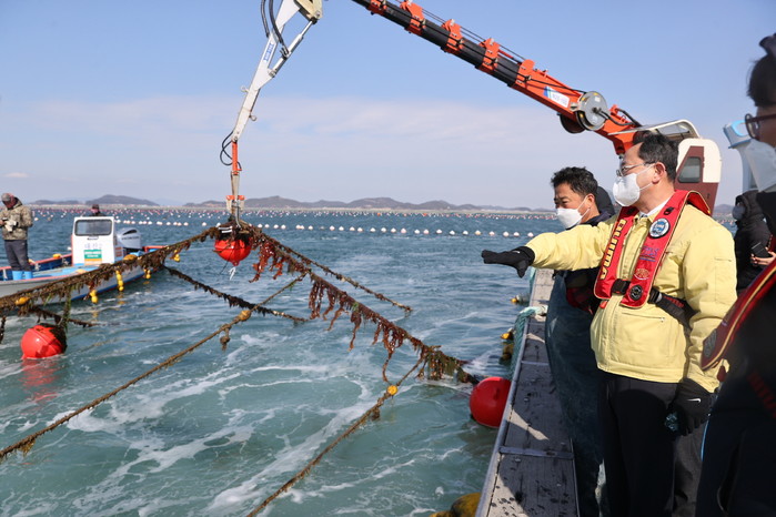 | ▲ 황백화 피해 다시마 양식어장 현장점검/해남군 제공 |