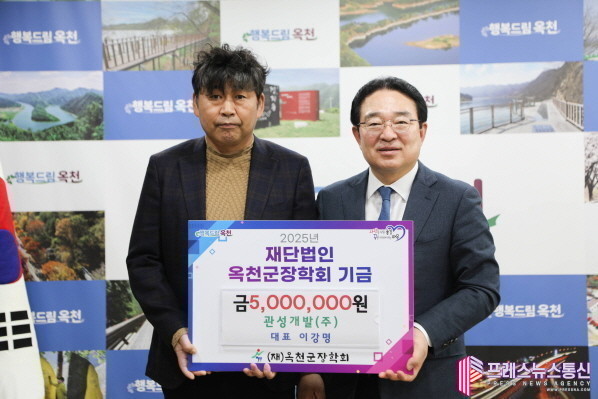 [프레스뉴스] 류현주 기자= 이강명 관성개발(주) 대표가 옥천군의 발전과 인재 육성을 위해 2년 연속 기부금을 쾌척했다.