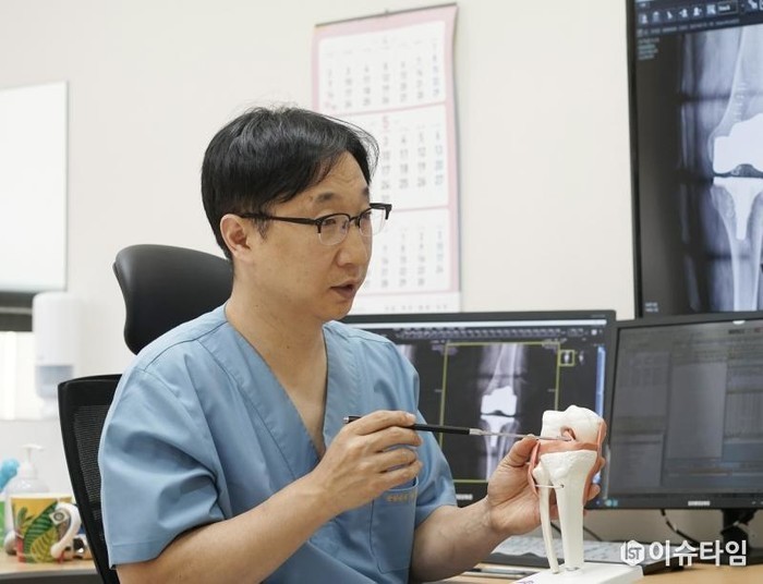 [에이스병원] 정재훈 원장= 무릎의 관절연골은 허벅지 뼈와 종아리뼈 끝부분의 표면을 덮고 있는 뼈 연골로 상당한 충격에도 잘 견딜 수 있는 내구성을 가진 부분으로 두께가 3-5mm 정도로 얇게 뼈를 덮고 있습니다. 그러나 한번 다치게 되어 균열이 가게 되거나 나이가 들어서 퇴행성 변화에 의해 관절연골은 닳아져 나가면 자연적으로 회복되기는 굉장히 힘들 수 있습니다.