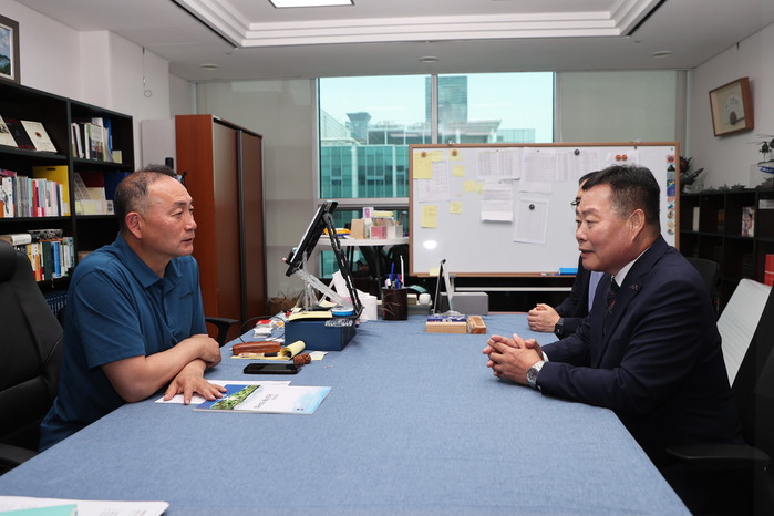 | ▲김원이 국회의원 면담하는 김산 군수/무안군 제공 |