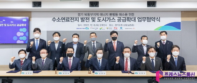 김동연 지사는 8일 경기도청에서 백영현 포천시장, 이충우 여주시장, 김덕현 연천군수, 김영문 한국동서발전 사장, 전동수 대륜이엔에스 대표이사, 사극진 코원에너지서비스 대표이사와 이런 내용을 담은 ‘경기 북동부지역 에너지 불평등 해소를 위한 수소연료전지 발전 및 도시가스 공급확대 업무협약서’에 서명했다.