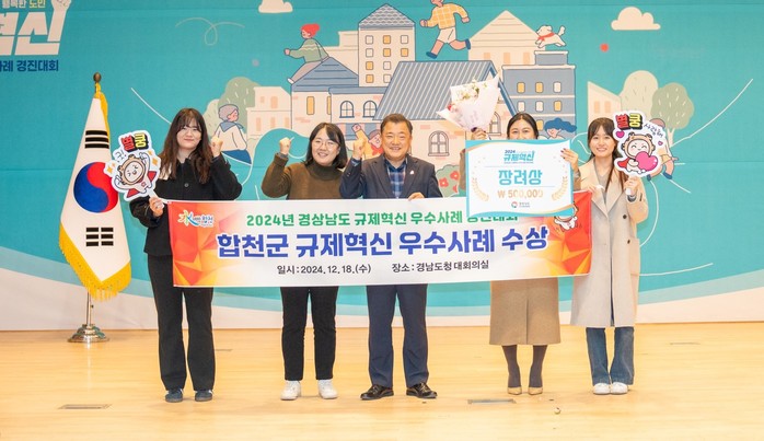 | ▲합천군(군수 김윤철)은 경남도가 주관한 ‘2024년 경상남도 규제혁신 우수사례 경진대회’에서 장려상을 수상했다고 19일 밝혔다. (사진=합천군) |