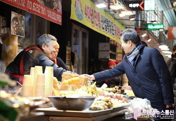 [프레스뉴스] 장현준 기자= 김동연 경기도지사는 4일 올해 첫 외부 공식일정으로 파주시 금촌통일시장을 찾아 상인들과 소통했다.