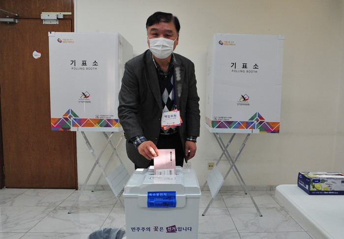 [프레스뉴스] 채정병 특파원=23일(현지시간) 제20대 대통령선거 요르단 재외국민투표가 28일까지 6일간(오전 8시~오후 5시) 주 요르단 대한민국 대사관에 마련된 재외투표소에서 진행 중인 가운데 교민 박혁주씨가 첫 번째로 투표하고 있다. 이번 선거에는 218명의 우리국민이 투표신청을 마쳤고, 지난 19대 대선에는 305명이 참여해 92.1%의 투표율을 기록 했다.