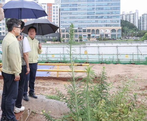 이날 현장 점검은 최근 집중호우로 인한 토사 유실이나 침수 등 건설 현장 내 사고 위험이 커진 데 따른 조치로 마련됐으며, 임 시장은 공사 관계자들과 함께 시설물 전반에 대한 현장 상황을 점검하고 위험 요소를 꼼꼼히 확인했다.