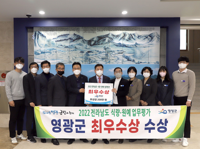 [전남=프레스뉴스] 차윤기 기자= 전남 영광군(군수 강종만)은 벼 적정 재배면적 확보 및 시설원예 재배면적 확대 및 원예.산업분야 청년농업인 육성 등 식량·원예 분야 시책추진을 인정받아 '2022년 전라남도 식량·원예 업무평가'에서 최우수군에 선정되었다고 밝혔다.