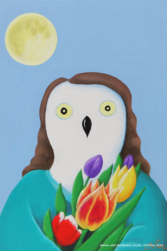 안윤모작가는 홍익대와 뉴욕주립대학을 졸업하고, 국내외 주요 미술관 갤러리에서 1,500여회의 전시에 참여하였으며, 자신의 자화상 격인 호랑이와 올빼미를 주인공으로 튤립과 매화 자작나무가 어울어진 동화적인 풍경을 즐겨 그려 많은 사랑을 받고 있다. 모나리자 진주귀걸이를 한 소녀 반고호자화상과 같은 명화를 패러디한 작품과 튤립꽃과 풍선이 폭죽처럼 터지는 작품들은 축제의 느낌을 더욱 활발하게 해준다. 특히 이번 전시를 위해 특별히 제작하여 처음 발표한 핑크색 튤립(100호)작품은 보는 이들을 행복감으로 물들게 한다.