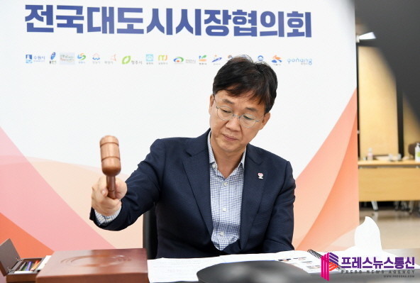 | ▲ 이민근 안산시장이 20일 민선8기 첫 전국대도시시장협의회 회의를 주재하고 있다.(사진=안산시) |