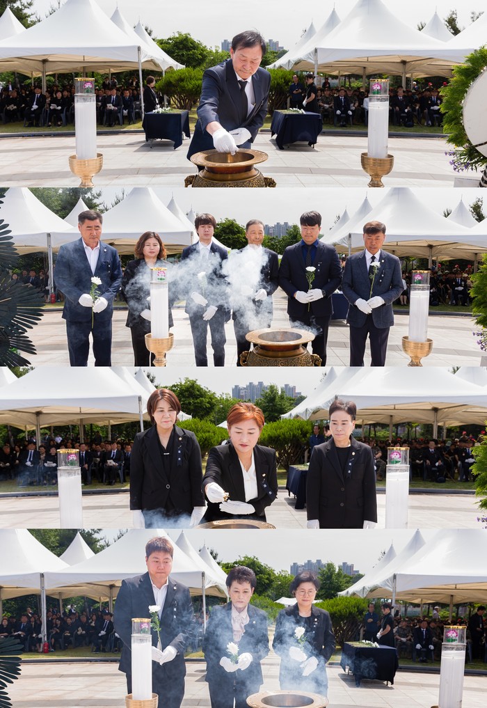 이날 추념식에는 박태순 의장과 김재국 부의장, 최진호 의회운영위원장, 한명훈 기획행정위원장, 설호영 문화복지위원장, 박은정 도시환경위원장, 현옥순 의회운영부위원장, 김유숙 기획행정부위원장, 유재수 문화복지부위원장, 이지화 도시환경부위원장, 박은경, 이진분, 최찬규 의원 등 13명의 시의원이 참여해 10시 정각 사이렌에 맞춰 묵념하고, 헌화와 분향으로 조국을 위해 헌신한 선열들에 대한 깊은 존경과 감사의 마음을 표했다.