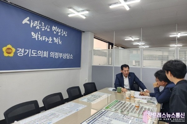 [프레스뉴스] 류현주 기자= 경기도의회 문화체육관광위원회 이영봉 위원장(더불어민주당, 의정부2)은 지난 24일 도의회 의정부상담소에서 의정부시청 공원과 관계자를 만나 의정부시 호원2동 직동근린공원 진입광장 개선 공사의 불법적 민원사안에 대해 논의하는 시간을 가졌다.