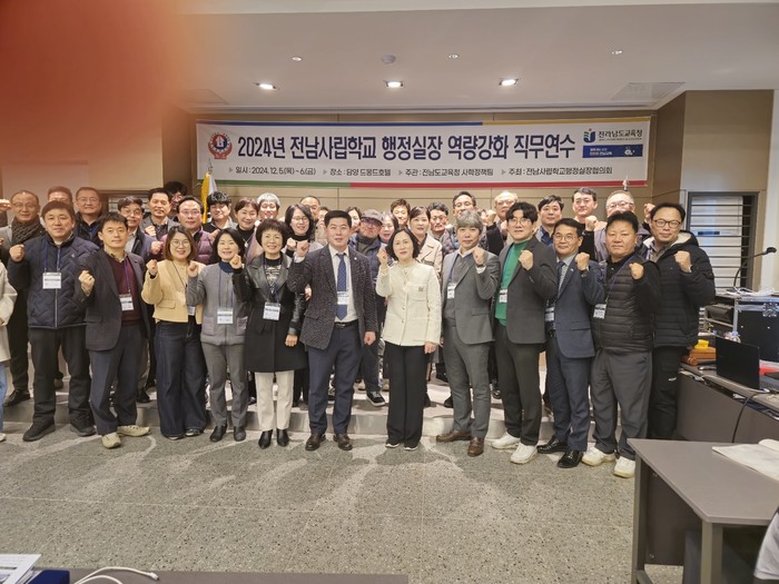 [전남=프레스뉴스] 박정철 기자=전남사립학교행정실장협의회(회장 정병영.옥과고)는 지난 12월 5일(목)~6(금), 1박2일 동안 “전남사립학교 행정실장 역량강화 직무연수”를 전남도교육청(교육감 김대중) 주관, 협의회 주최로 전남사립학교 행정실장 70명과 사학정책팀장과 팀원이 참석하여 담양 드몽드호텔 세미나실에서 성황리에 개최했다.