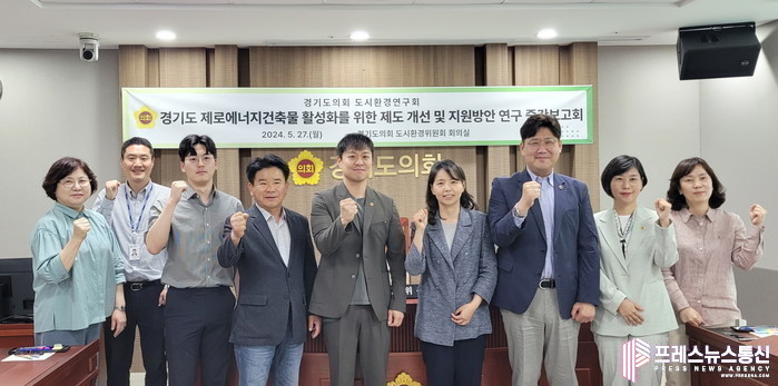[프레스뉴스] 류현주 기자= 경기도의회 의원연구단체인 ‘도시환경연구회(회장 유영일, 국힘ㆍ안양5)’가 27일 도시환경위원회 회의실에서 「경기도 제로에너지건축물 활성화를 위한 제도 개선 및 지원방안 연구」에 대한 정책연구용역 중간보고회를 개최했다.