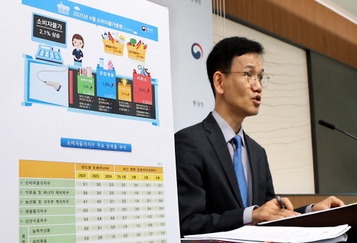 ▲이두원 통계청 경제동향통계심의관이 2일 세종시 정부세종청사에서 2025년 4월 소비자물가동향을 발표하고 있다.(사진= 뉴스1) |