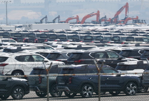| ▲경기 평택시 포승읍 평택항에 수출용 차량이 세워져 있는 모습.(사진= 뉴스1) |