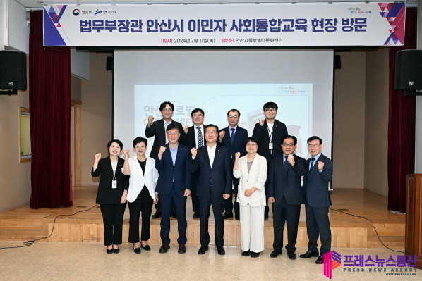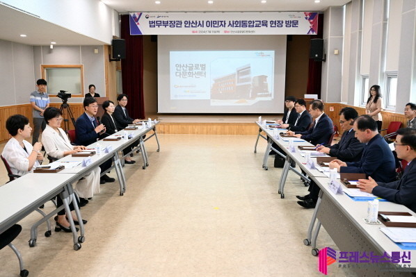 [프레스뉴스] 장현준 기자= 안산시(시장 이민근)는 이민근 시장이 이민자 사회 통합 교육 현장 점검을 위해 11일 오전 ‘안산시글로벌다문화센터(단원구 초지동 소재)’에 방문한 박성재 법무부장관(이하 박 장관)과 이민정책에 대한 현안 논의를 진행했다고 밝혔다.