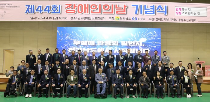 [전남=프레스뉴스] 강래성 기자= 전라남도는 19일 완도청해진스포츠센터에서 제44회 장애인의 날 기념식을 개최하고 장애인과 비장애인이 차별 없이 함께 사는 사회를 만들 것을 다짐했다.