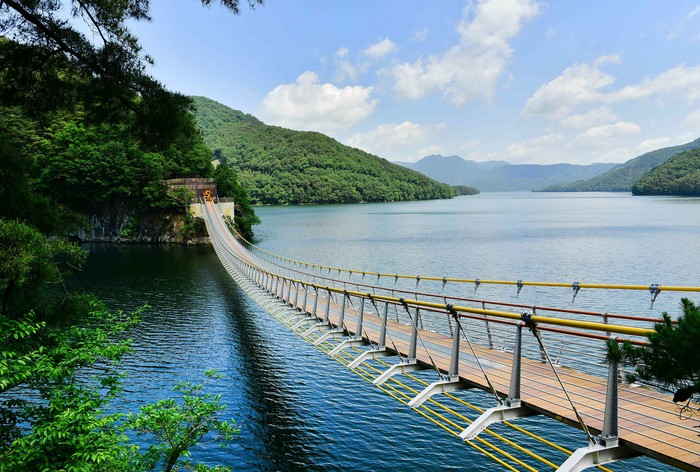 웅장한 규모를 지녀 ‘내륙의 바다’로 불리는 장성호에는 호수를 에워싼 숲속 데크길이 조성되어 있다. 장성댐을 중심으로 좌측은 두 개의 출렁다리가 있는 출렁길, 우측은 숲속길로 불린다.
