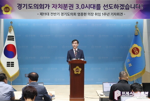 염 의장은 이날 ‘경기도의회가 ‘자치분권3.0 시대’를 선도하겠습니다’라는 제목의 기자회견문을 통해 제11대 의회 전반기 의장 취임 1년차에 거둔 주요 의정성과와 남은 임기동안 추진할 계획과 구상을 발표했다.