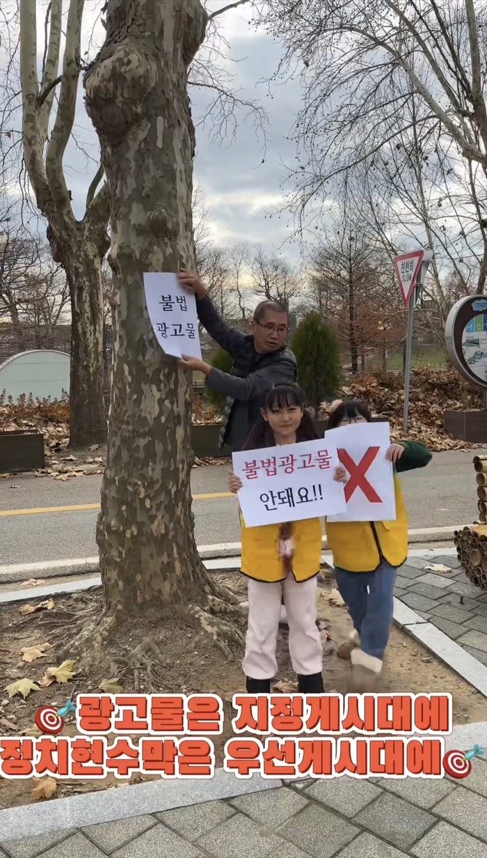 이날 캠페인에서는 올바른 광고물 문화 정착을 위해 어린이 안전히어로즈와 함께 주요 관광지에서 ‘지정 게시대’와 ‘정치 현수막 우선 게시대’를 이용해달라는 내용을 쉽고 재미있게 담은 짧은 영상을 제작해 군 공식 사회관계망서비스(SNS)에 올려 홍보했다.