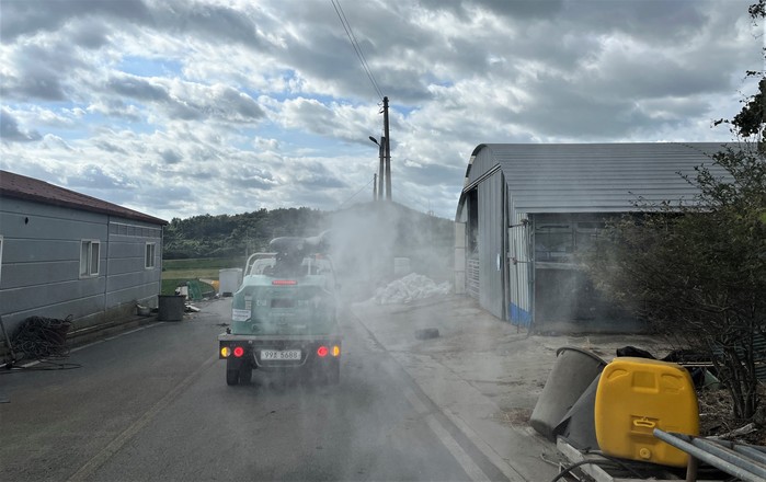 보건부서와 협조해 농장 주변 연무소독을 통해 모기 등 해충방제를 추진하고 있으며, 공동방제단 소독 차량 및 시군 보유 차량 등 소독차량(134대)을 총동원해 소 사육농장, 도축장, 사료공장 등을 집중 소독하고 있다.
