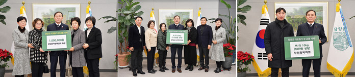 담양군은 담양군여성축산회(회장 신남순) 현금 100만 원, 한국국토정보공사 담양지사(대표 최광욱) 온누리상품권 30만 원, 담양읍 농가주부모임(회장 신부자) 백미 20kg 20포(110만 원 상당), 양우회빅마트(대표 김경진) 백미 10kg 20포(60만 원 상당)를 기탁했다고 전했다.
