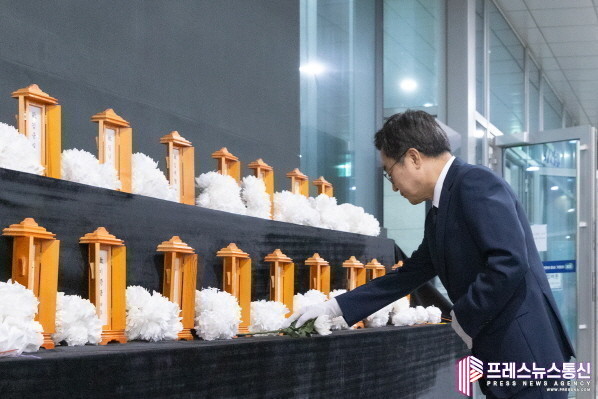 [프레스뉴스] 장현준 기자= 김동연 경기도지사가 유럽출장 복귀 후 첫 공식 일정으로 4일 김성중 행정1부지사, 주요 실국장들과 도청사에 마련된 아리셀 화재 사고 희생자 분향소를 방문해 희생자들을 추도했다.