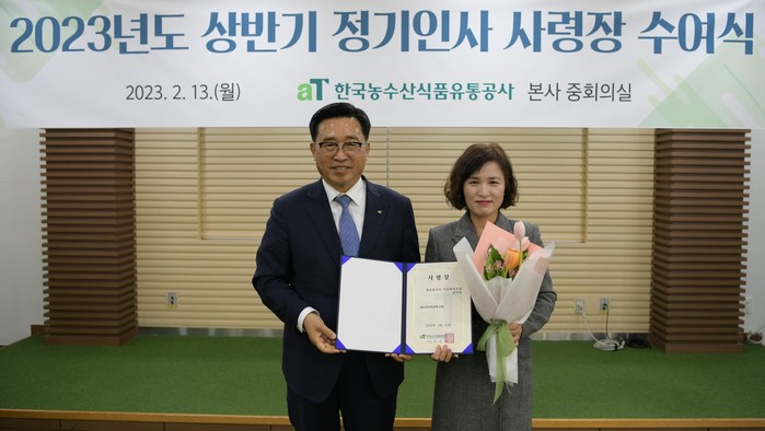 [전남=프레스뉴스] 강래성 기자= 한국농수산식품유통공사(사장 김춘진)는 2월 13일 자로 실시한 2023년 정기 인사에서 지난해에 이어 연속으로 여성 처장을 배출했다.