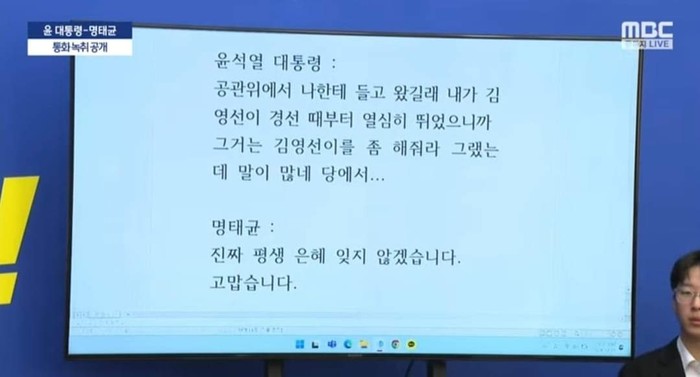 명태균과는 경선이 끝난 뒤로는 관계를 끊었다고 했었다. 그것부터가 거짓말인데...
