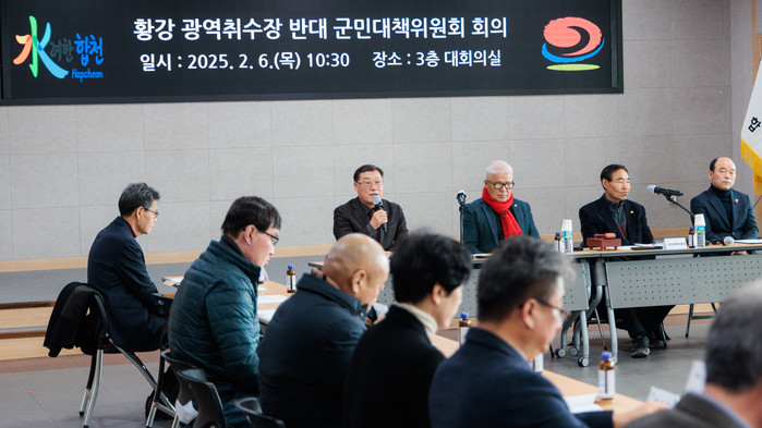 | ▲황강 광역취수장 반대 군민 대책위원회(위원장 여한훈·이종철)는 6일 전체 회의를 개최하고 현 임원진을 3기 임원진으로 유임하는 것으로 결정했다고 밝혔다. (사진=합천군) |