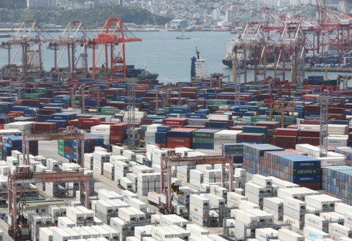 | ▲부산항 신선대부두에 컨테이너가 가득 쌓여 있는 모습.(사진= 뉴스1) |