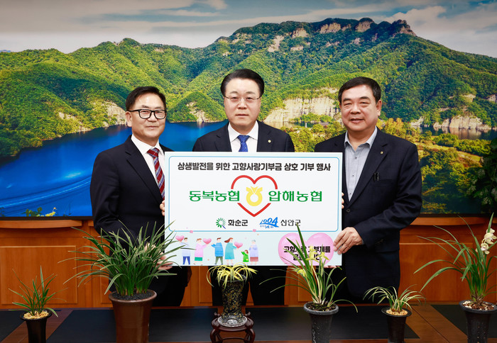압해농협 천성태 조합장은 “이번 상호기부로 화순과 신안이 동반 성장하기를 기대한다”라며 “두 농협의 꾸준한 협력을 통해 지역 사회 발전에 더욱 이바지하겠다”라고 밝혔다.