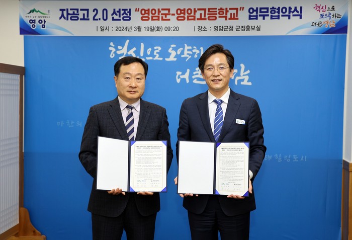 [전남=프레스뉴스] 강래성 기자= 영암군(군수 우승희)이 영암고등학교와 19일 군청에서 ‘자율형 공립고 2.0 운영 및 교육발전특구 시범사업 성공 추진 업무협약’을 체결했다.