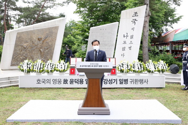 한편, 이번에 귀환한 고 윤덕용 일병과 고 강성기 일병은 지난 1951년 6·25 주요 격전지 중 하나인 강원도 양구군 방산면 백석산 전투에서 전사한 후 지난 2017년 6월 유해발굴감식단과 육군 21사단 장병에 의해 수습됐으며, 유가족이 유전자 시료 채취에 참여하면서 올해 신원이 확인됐다.