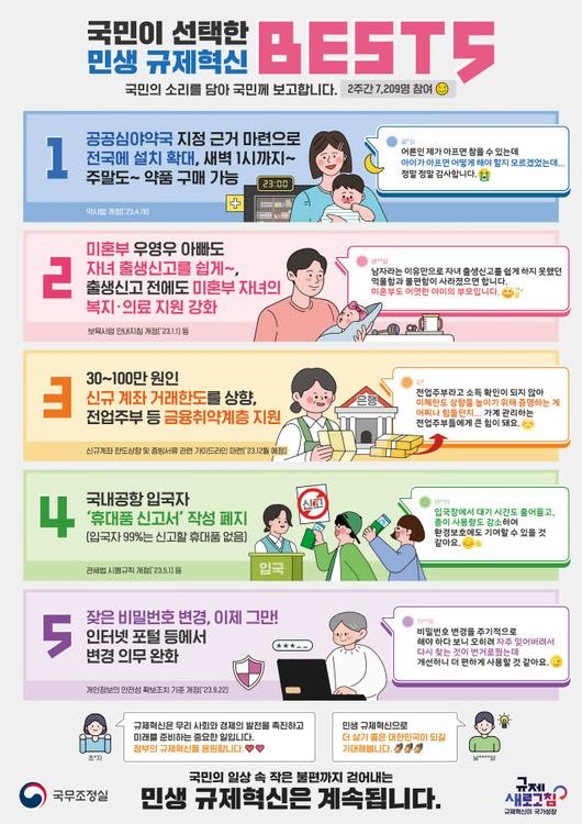국조실, ‘BEST-5 민생 규제혁신 사례’ 선정…총 7209명 대국민 투표