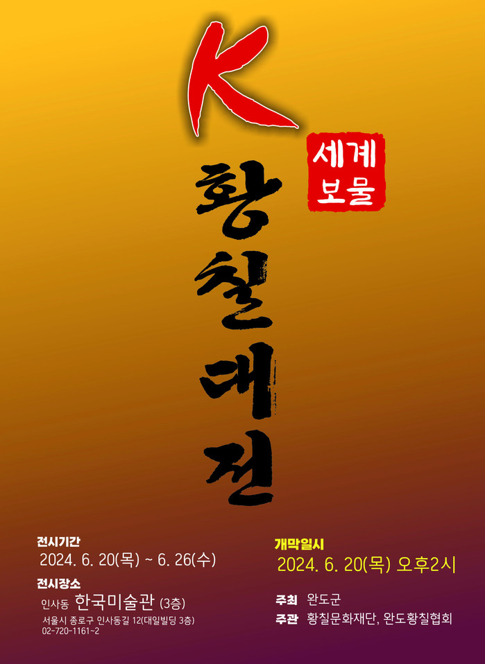 [전남=프레스뉴스] 박정호 기자= 전남 완도군은 완도 황칠의 우수성을 알리고자 6월 20일부터 26일까지 서울 인사동 한국미술관에서 ‘세계 보물 K-황칠 대전’이라는 주제로「황칠 공예전」을 개최한다.