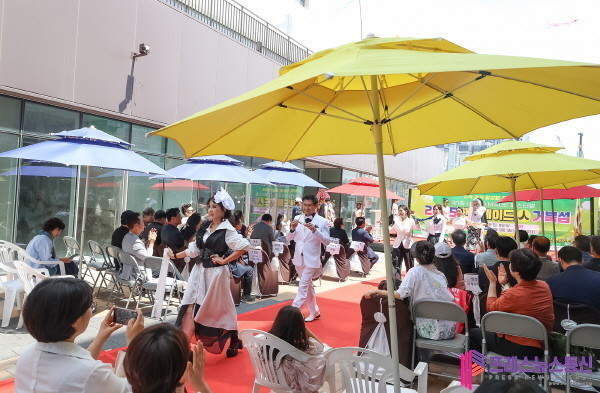 ▲수공예작품으로 만든 옷을 입은 시니어모델들의 공연(사진=시흥시) |