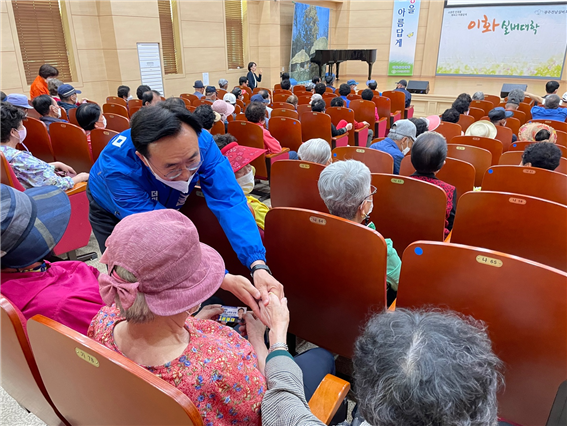 [전남=프레스뉴스] 강래성 기자= 더불어민주당 나주시장 윤병태 후보가 5일 오후 2시부터 진행된 나주 이화실버대학 효(孝)공연 행사에 어르신들을 찾아 뵙고 인사드렸다.