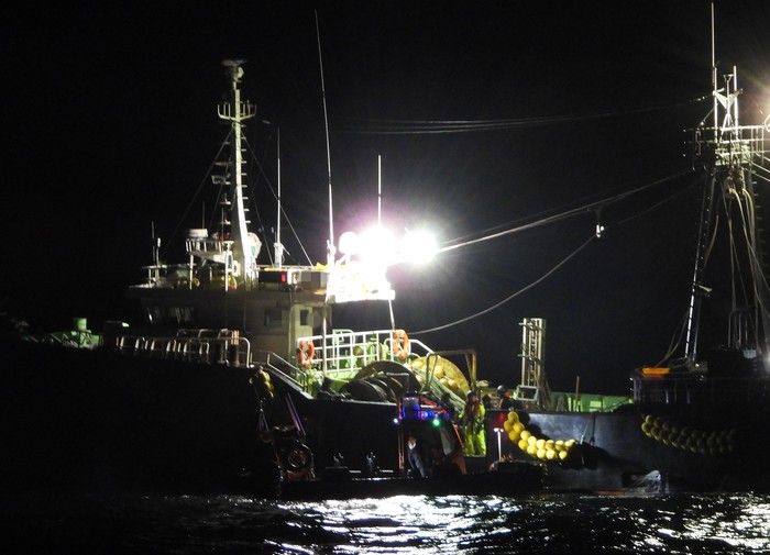 통영해양경찰서는 16일 오전 00시 52분경 통영시 욕지도 남서방 35해리 해상에서 선박 위치발신장치를 끄고 조업금지구역(욕지도 남서방 10해리)에서 불법조업 중이던 쌍끌이대형기선저인망 A호와 B호 2척이 검거에 불응하며 도주한 것을 2시간 50분 추적 끝에 수산업법과 해양경비법 등의 위반 혐의로 적발했다.