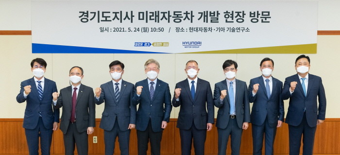 이번 현장방문은 미래차 분야 기술개발 현황을 청취하고 향후 경기도 차원의 정책방향을 모색하기 위해 마련된 자리로, 현대차 그룹 정의선 회장과 공영운·박정국 사장 등이 함께했다.