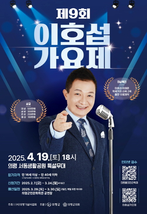 | ▲의령군은 7일부터 내달 24일까지 ‘제9회 이호섭가요제’ 예선 참가자를 모집한다. (사진=의령군) |