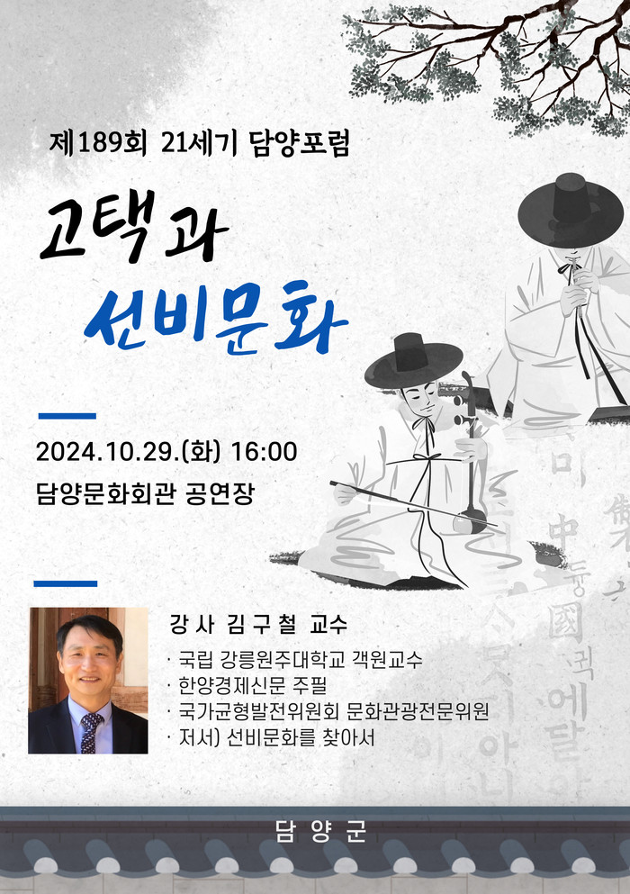 | ▲제189회 21세기 담양포럼 고택과 선비문화 특별강연 포스터(사진제공=담양군) |