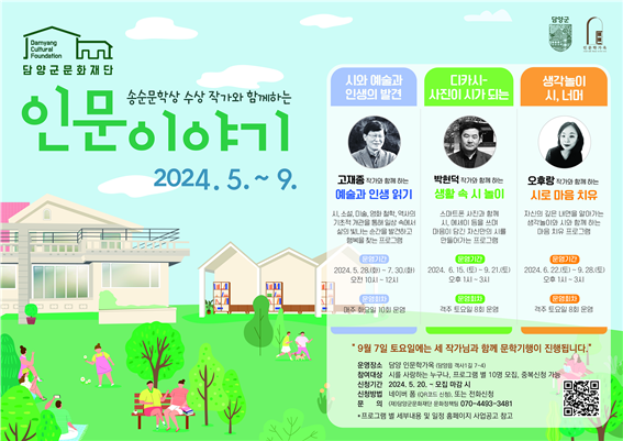 프로그램은 인문학에 관심 있는 누구나 참여 가능하며 네이버 폼(naver.me/FepfTqh2) 또는 전화(☎070-4493-3481)로 신청하면 된다.