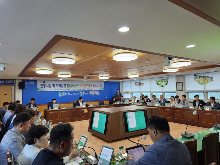 [전남=프레스뉴스] 강래성 기자= 전남 무안군(군수 김산)은 지난 17일 군청 상황실에서 군수, 부군수 등 40여 명이 참석한 가운데 ‘무안군 전통시장·상점가 및 지역상권 활성화 방안’ 연구용역 착수보고회를 개최했다.