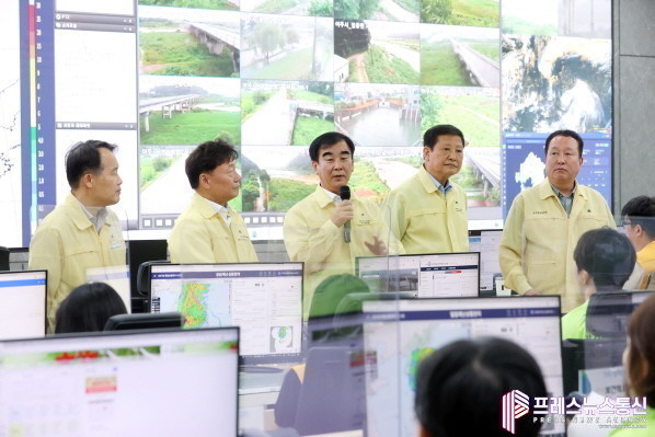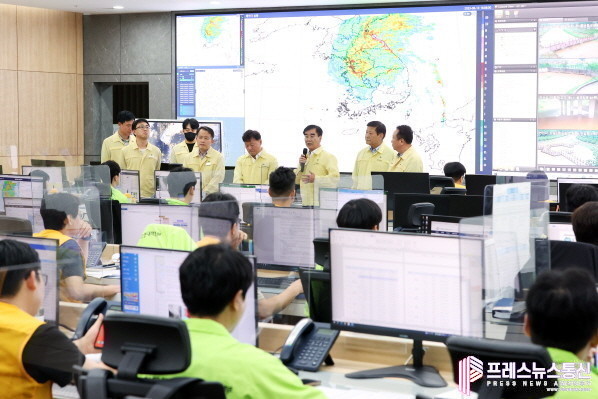 [프레스뉴스] 김대일 기자= 경기도의회는 10일 오후 4시 염종현 의장, 김판수 부의장, 남종섭 더불어민주당 대표의원, 안계일 안전행정위원장이 道 재난안전대책본부를 방문하여 제6호 태풍 ‘카눈’ 북상에 대비해 철저한 대응으로 주민 피해를 최소화할 것을 당부했다.